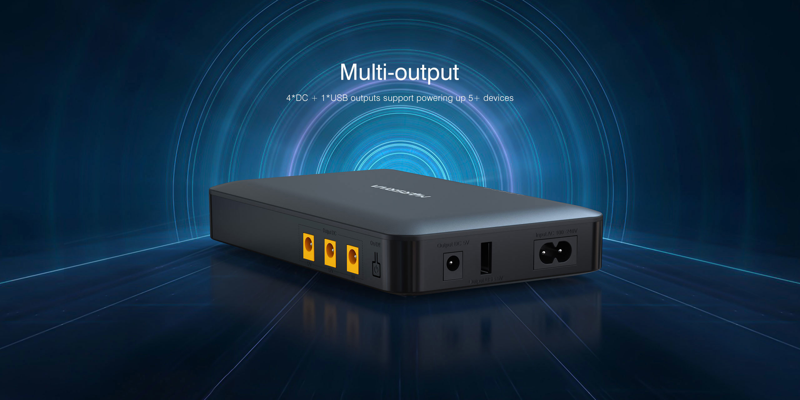 ⚡ আউটপুট: 3×DC (12V/1.5A, 12V/1.5A, 9V/2A) + 1×USB (5V/2.1A)
